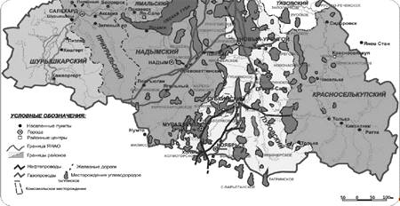 Рисунок 1.1 - Обзорная карта Ямало-Ненецкого автономного округа