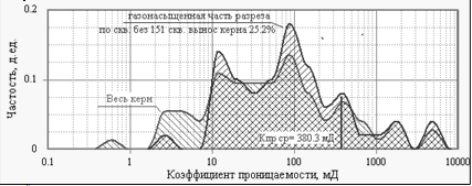 Дифференциальные распределения коэффициента проницаемости по керну
