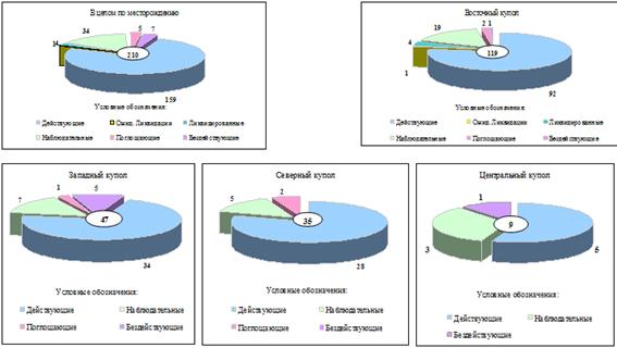 пределах Западного купола выделено 15 объектов, в составе которых 25 залежей