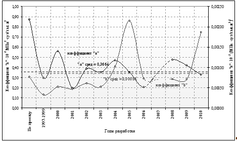 значений рабочих дебитов скважин. Поэтому, достоверно оценить характер изменения продуктивности не представляется