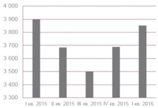 года, вырос лишь на 20,8% в сравнении с I кварталом 2015 года и составил 44,0