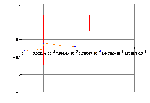 . Используя временные характеристики цепи и интеграл наложения, были получены реакции цепи на импульс, изображенный на рис.2. для двух значений коэффициента усиления операционного усилителя и построены соответствующие графики (рис.2.1.,2.2.). Эти характеристики и графики также соответствуют теоретическим.