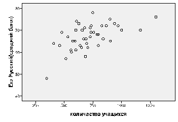количеством учащихся, результаты ЕГЭ по русскому языку выше;