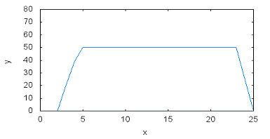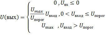 Сигнал на выходе формируется в соответствии с передаточной характеристикой, заданной графиком: