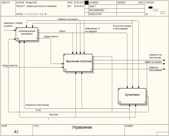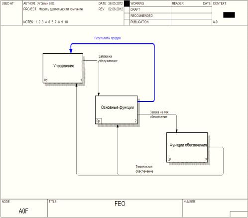 На данном рисунке отображена диаграмма А0, на которой показаны все главные функции компании, такие как “”Управление, ”Основные функции” и ”Функции обеспечения”.
