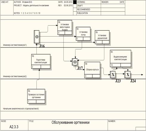 На данной диаграмме (Swim Lane Diagram) отображён процесс обслуживания принтера в аналитическом отделе.