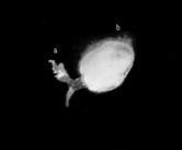 самцов (нижняя строка) дрозофилы: a - нормальные гонады; b - односторонняя
