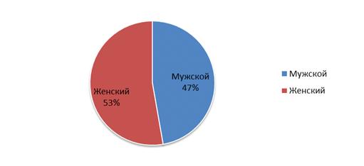 выборки и показывает процентное отношение мужчин и женщин к общему количеству