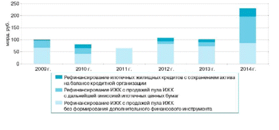 Таким образом, в 2014 году рефинансирование ИЖК (прав требования по ИЖК) осуществлялось в основном на внутреннем финансовом рынке.