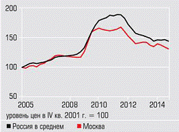 Снижение это объяснялось главным образом отсутствием роста номинальных цен на жилье в переоцененных Москве и Санкт-Петербурге, особенно на дорогие элитные квартиры.