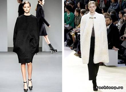 Основная часть пальто может иметь трапециевидную форму либо форму футляра, либо струиться по фигуре. Некоторые модные дома даже предложили вариант кейпа в виде двубортной шинели облегающей фигуру. В общем, вариантов исполнения не мало.