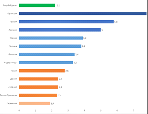 и в Германии - 1,9. По приведенным выше данным можно представить следующую