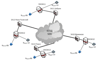 В узлах, где сходятся линии связи нескольких направлений, установлен универсальный синхронный мультиплексор SMS-600V, который является составной частью семейства изделий SDH, разработанных фирмой NEC (Япония) и производимых российским предприятием ЭЗАН. Этот мультиплексор может быть сконфигурирован как терминальный (TRM), ввода/вывода (ADM), кольцевой (RING); работает на уровнях STM-4 или STM-1 в кольцевых или линейных конфигурациях. Мультиплексор соответствует всем стандартам МСЭ-Т, поддерживает все виды защитной коммутации. Обеспечивает ввод/вывод и гибкую кросс-коммутацию потоков Е1 непосредственно с уровня STM-4.