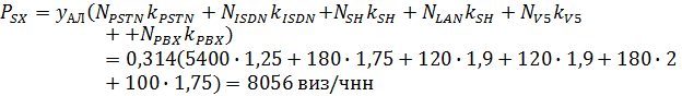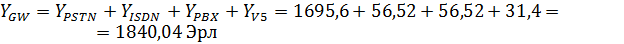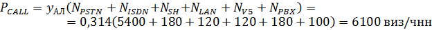 нагрузка создаваемая абонентами PSTN подключенными к первому шлюзу;