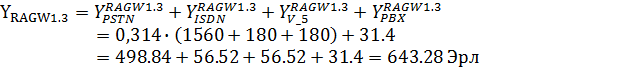 нагрузка создаваемая абонентами PSTN подключенными к третьему шлюзу;