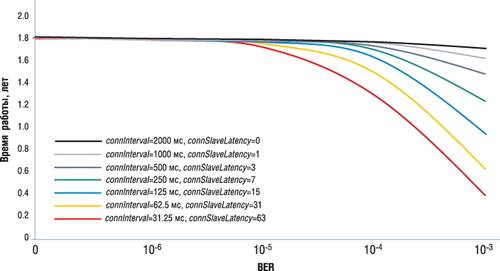 событий связи connInterval и уровня битовых ошибок (BER) показано на рисунке