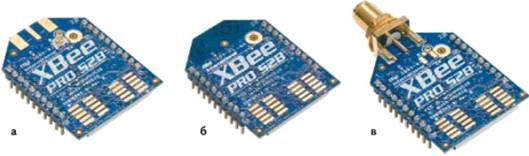 Рисунок 3.1 - Модули XBee Series 2 [10]: а) UFL-разъем; б) PCB-антенна; в) SMA-разъем