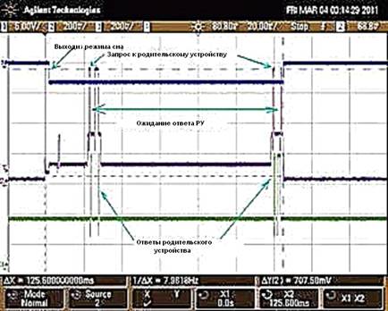 период сна. Время нахождения в активном режиме не превышает ~ 10 мс при этом
