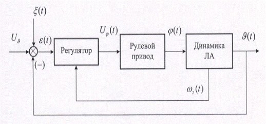 В данной курсовой работе у нас заданы 2 входа - регулярный (то есть, управляющий сигнал, задающий требуемый угол тангажа КА) и случайный (в данном случае, окрашенный шум). На основании сигнала об ошибках измерений (в виде окрашенного шума), принимается решение о необходимом управляющем воздействии. Необходимо понимать, что эти ошибки должны учитываться при проектировании системы стабилизации ЛА, так как они влияют на точность работы системы стабилизации.