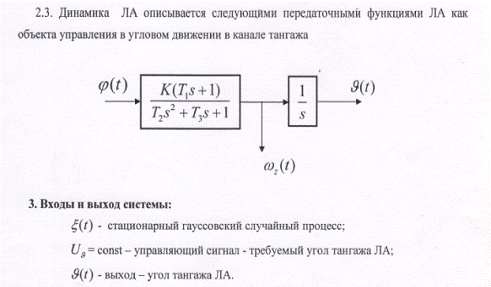 Объектом исследования данной курсовой работы является система стабилизации угла тангажа ЛА путем управления отклонением вектора тяги при случайных ошибках измерительных приборов. Для решения данной задачи, мы создадим аналитическую и имитационную модели системы с двумя входами, регулярным и случайным (окрашенным шумом).