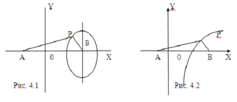 Линии безразличия предпочтений в модели Рейли на рис. 4.1. представлены окружностью, на рис. 4.2 - гиперболой. Использование модели Рейли позволяет оценить графически влияние системы предпочтений на распределение спроса на образовательное учреждение в пространстве.