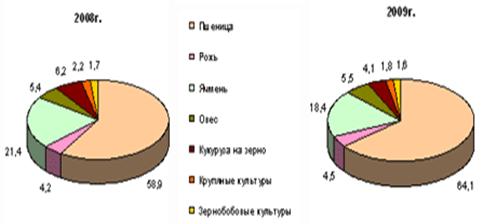структуре производства зерна в 2009 г. по сравнению с 2008 г. увеличился
