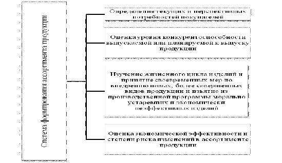 Формированию ассортимента предшествует разработка предприятием ассортиментной концепции, которая представляет собой направленное построение оптимальной ассортиментной структуры, товарного предложения, при этом за основу принимаются потребительские требования определенных групп и необходимость обеспечить наиболее эффективное использование предприятием сырьевых, технологических, финансовых и иных ресурсов с тем, чтобы производить изделия с низкими издержками.