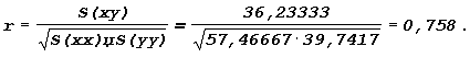 Значение r, равное +0,758,