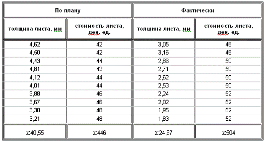 За счет снижения расхода высококачественной листовой стали по сравнению с запланированной изменение составило: