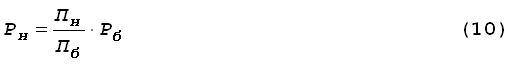 где Рн - цена новой продукции, ден. ед.; Рб - цена базовой продукции, ден. ед.; Бб - сумма баллов, характеризующих параметры качества базовой продукции; Бб - сумма баллов, характеризующих параметры качества новой продукции.