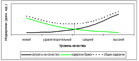 Конечно же, при увеличении издержек на управление качеством издержки брака будут уменьшаться. Однако это не значит, что предприятию стоит неограниченно увеличивать затраты на качество. Необходимо постоянно анализировать издержки на управление качеством, издержки брака и общие издержки предприятия, т.к. при необоснованном увеличении затрат на качество возможен рост общих издержек.