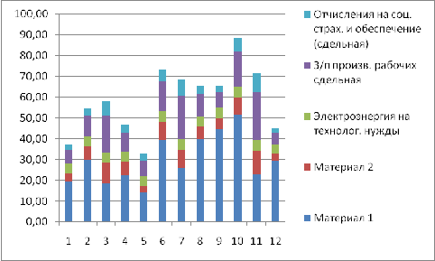 В данном курсовом проекте осуществляется один из важнейших разделов экономического анализа - анализ затрат на производство, включающих в себя затраты двух видов материалов, сдельную и повременную оплату труда с обязательными отчислениями на социальное страхование, амортизацию, прочие расходы производства за 12 периодов времени. Таким образом, предметом анализа в данном курсовом проекте являются полные производственные затраты на производство продукции, т.е. ее производственная себестоимость.