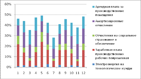 наличие сезонности производства, проведен анализ состава и структуры затрат,