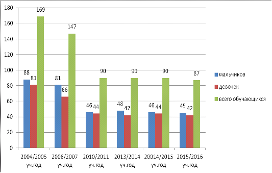 учащихся на протяжении 2003 - 2016 года (таблица 1, рисунок 3) было выявлено,