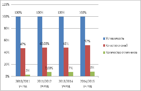 качества знаний и количества отличников в течение нескольких лет.