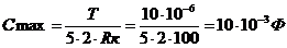 = 1\fтг = 1\100кГц = 10 мкс, то T = (3-5)t, где t = 2RкСmax.