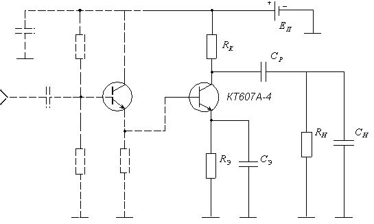 применения эмиттерного повторителя (изображен пунктиром) будет обоснована