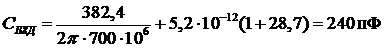 Пересчет емкости коллекторного перехода ведем по формуле (3.8). Значение необходимого напряжения берем в середине импульса, а не в рабочей точке, потому как по мере нарастания значение емкости существенно увеличивается.