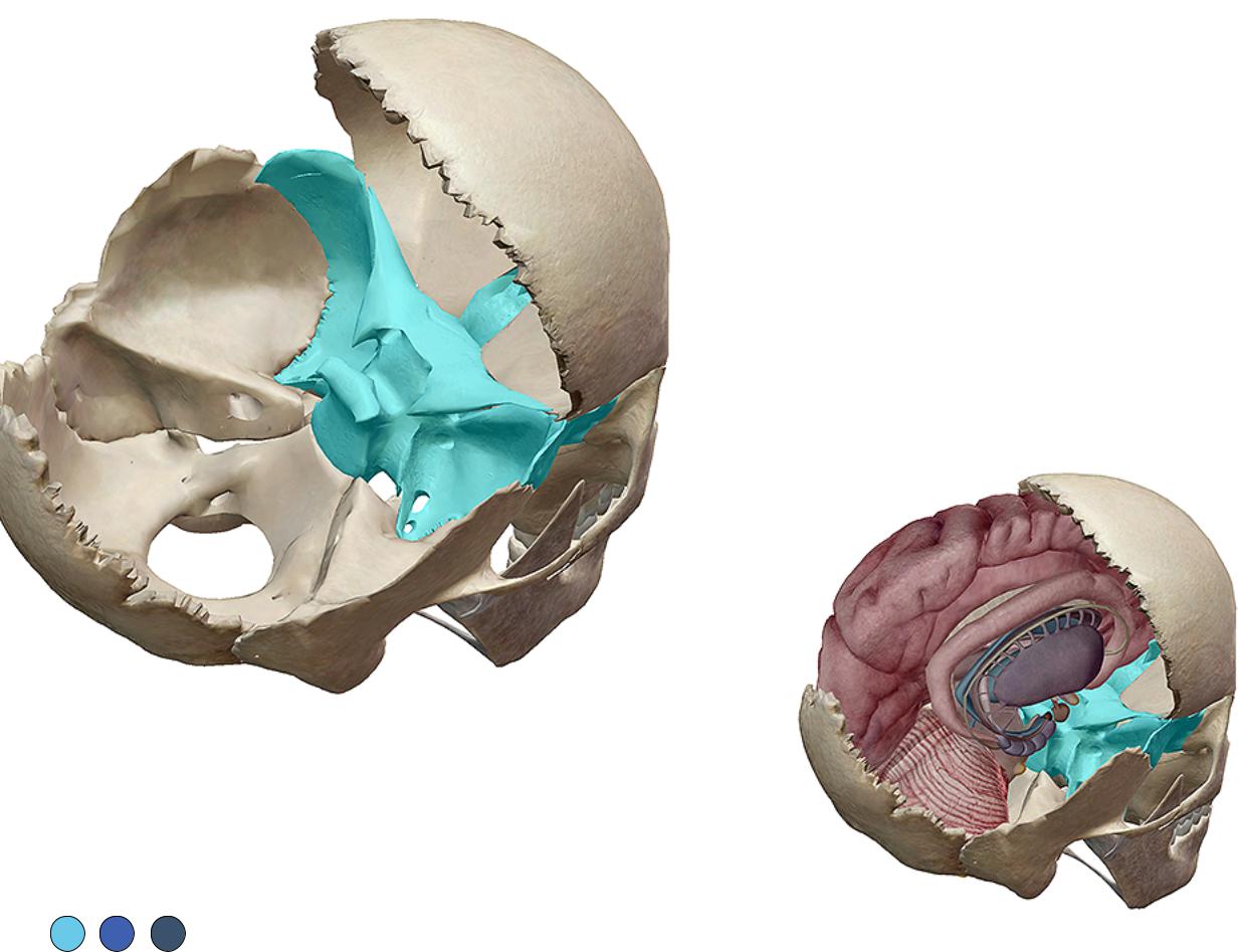The sphenoid is a bat-shaped bone and is the keystone bone at the base of the cranium.