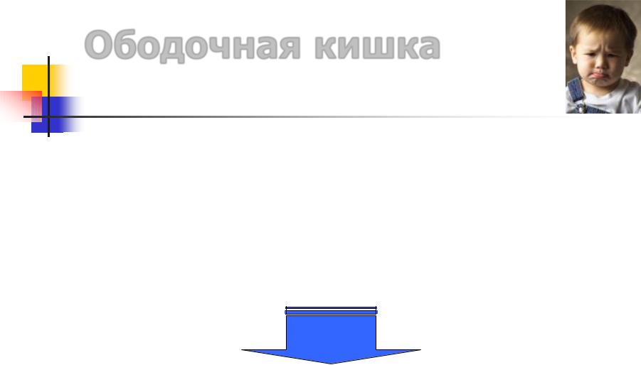поперечная ободочная часть относительно короткая и менее подвижная