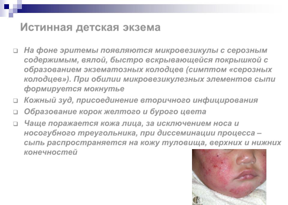 Истинная детская экзема (развивается на 3-6 мес.