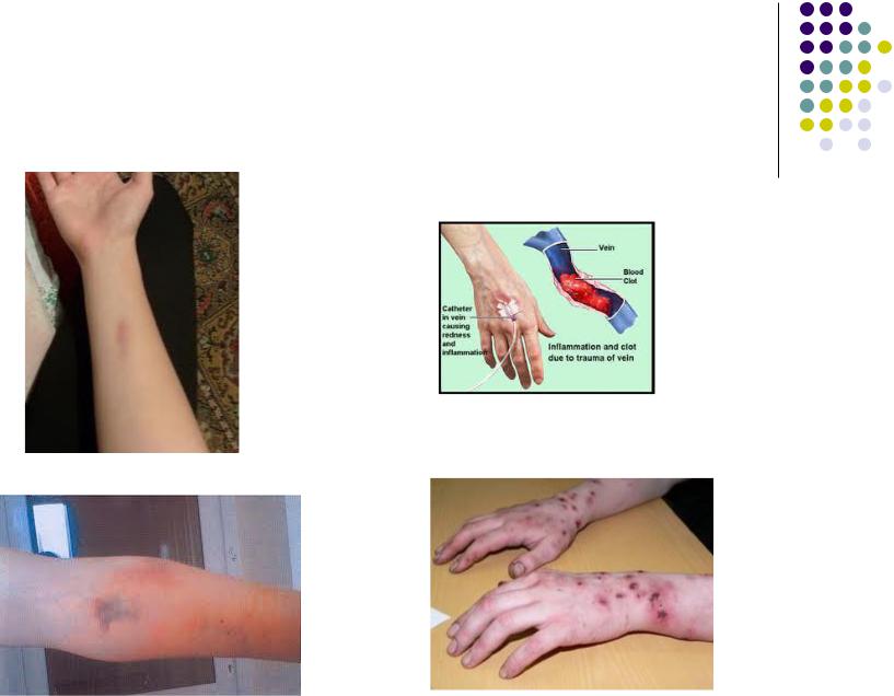 •При пальпации – шнуровидный болезненный инфильтрат по ходу вены без признаков флюктуации