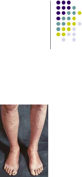 Осмотр: бледность и сухость кожного покрова, отсутствие оволосения, изменения ногтевых пластин, трофические изменения мягких тканей (трещины, язвы, некрозы), гипотрофия мышц, запустевание поверхностных вен (с-м «канавки»).