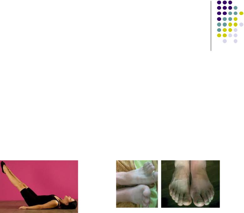 Проба Самуэльса – Гольдфлама В том же положении пациент выполняет несколько быстрых сгибательных и разгибательных движений в голеностопных суставах. При наличии нарушенного кровообращения конечностей через 1—2 мин наступает побледнение пальцев стопы и ее подошвенной поверхности с ощущением онемения, иногда даже болей.