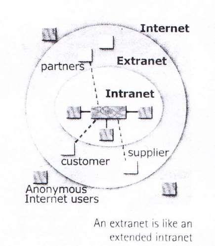 restricted to a company's internal use. extra- (= outside, in addition to) An extranet links a