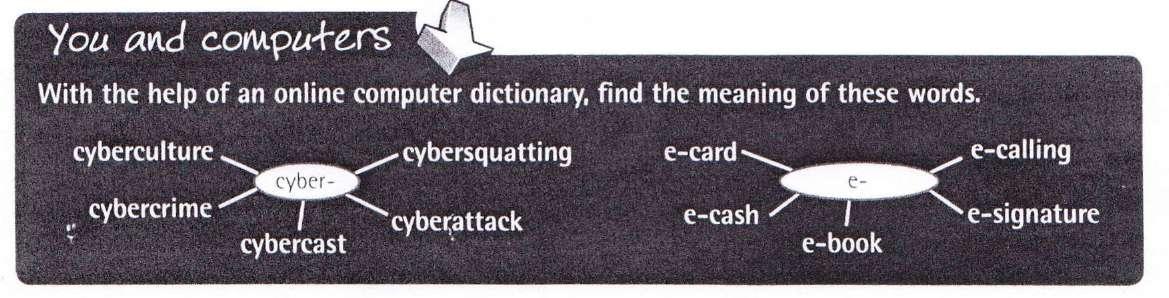 The e- prefix means 'electronic'; cyber- describes things relating to computer networks, e- I he term e-learning refers to the use of ICT to provide education and training.