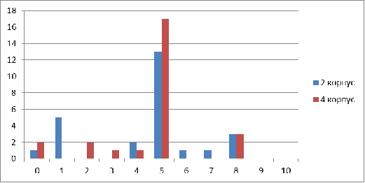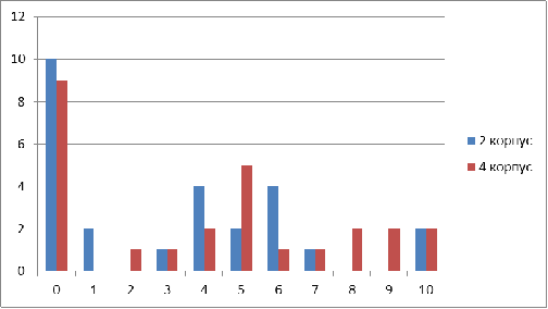 Было проведено анкетирование двух пятых классов во втором и четвертом корпусах гимназии. Исследовались две группы по 26 человек. Разные корпуса были выбраны, чтобы сравнить исходные данные, и оценить разницу в моральных качествах учеников из разных корпусов школы.