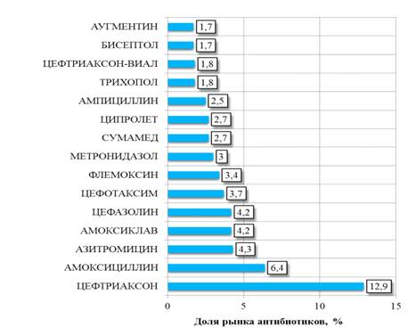 На рисунке 3 представлены данные о наиболее популярных антибиотиках по
