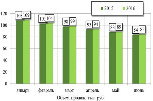На рис. 1 представлена динамика продаж за первые полугодия 2015 и 2016 годов.