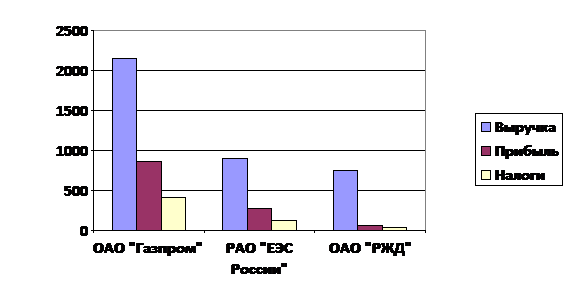 В экономике России естественные монополии занимают особое положение как по своим объемным показателям, так и по выполняемым функциям. Рассмотрим показатели деятельности трех крупнейших российских монополий - ОАО «Газпром», РАО «ЕЭС России» и ОАО «РЖД».